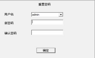 根据上图右侧提示框中的说明进行操作,得到验证码,输入验证码。点击重置密码按钮, 会弹出重置密码功能界面,如图3.3。输入要修改的密码,点击确定按钮修改设备密码。